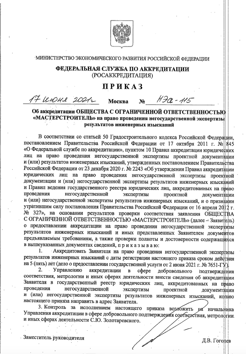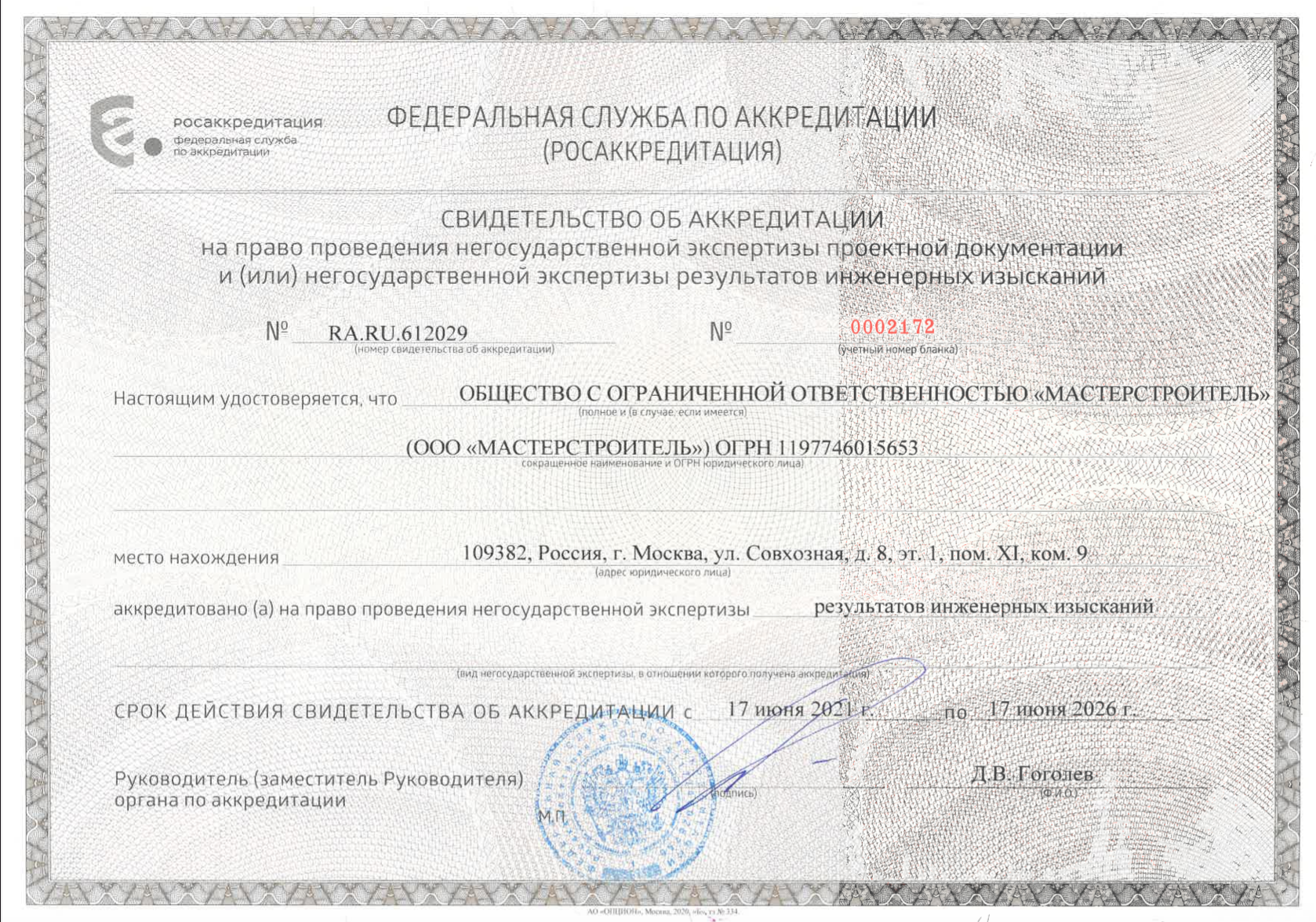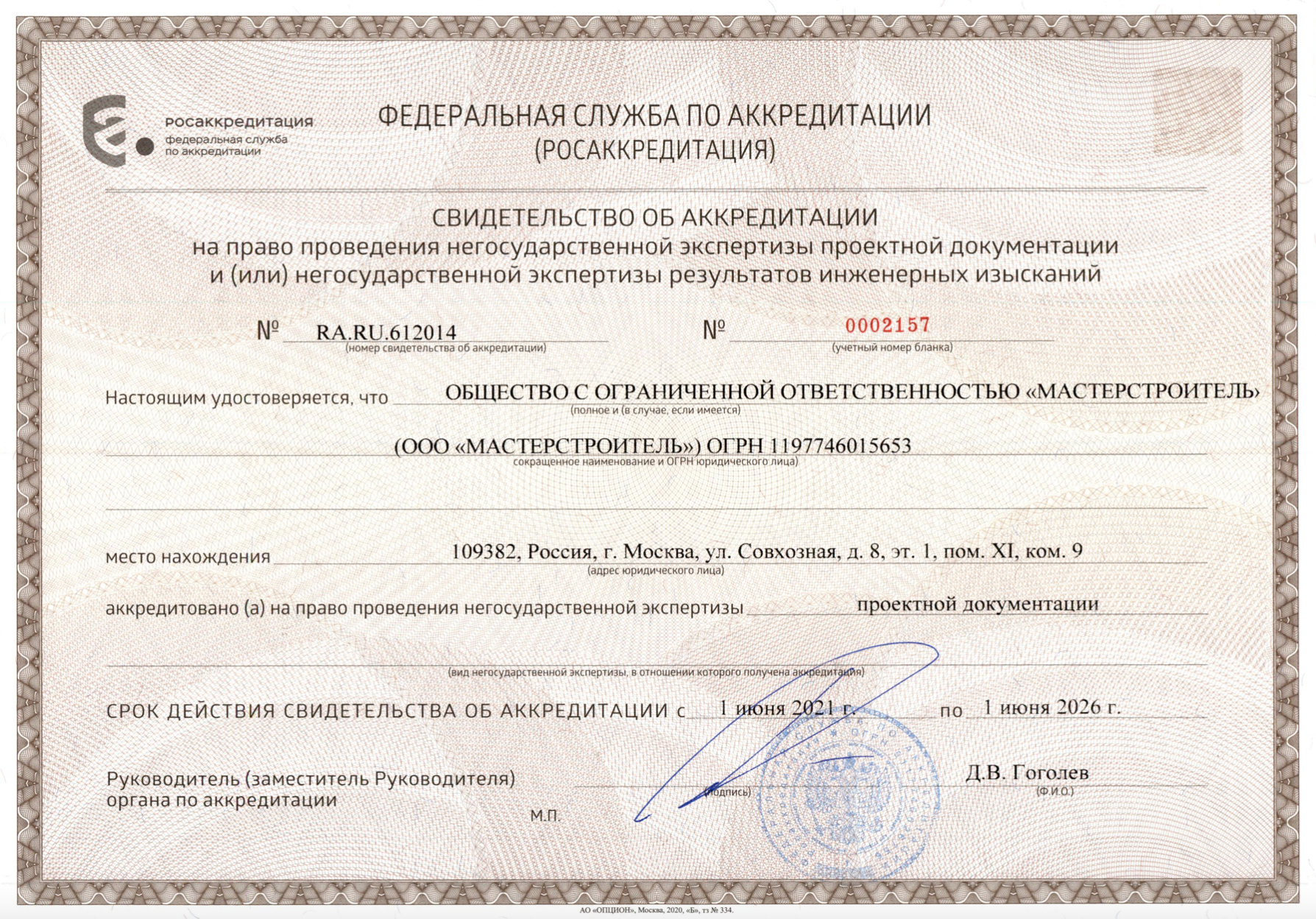 На право проведения негосударственной экспертизы проектной документации и негосударственной экспертизы результатов инженерных изысканий